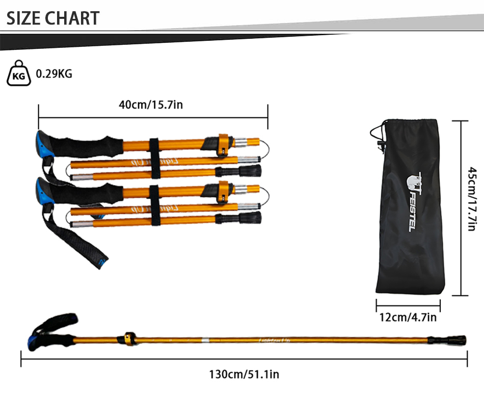 Marca : FABBRICA DI ANHUI FEISTEL Relaziona la produzione : OEM e ODM Prodotto : I bastoncini da passeggio pieghevoli multifunzionali in alluminio 7075 ultraleggeri sono caratterizzati da una struttura resistente, comode impugnature in EVA e una portabilità compatta, offrendo un supporto affidabile per escursioni all'aperto, arrampicata, trekking e avventure di camminata quotidiane.