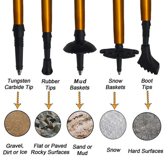 I bastoncini da trekking, come valido aiuto per gli sport all'aria aperta, possono portare molti benefici alle attività di alpinismo all'aperto, come migliorare la stabilità della camminata e ridurre il carico sulle gambe. Abbiamo bastoncini da trekking in fibra di carbonio e lega di alluminio, nonché bastoncini da trekking a tre e quattro sezioni.