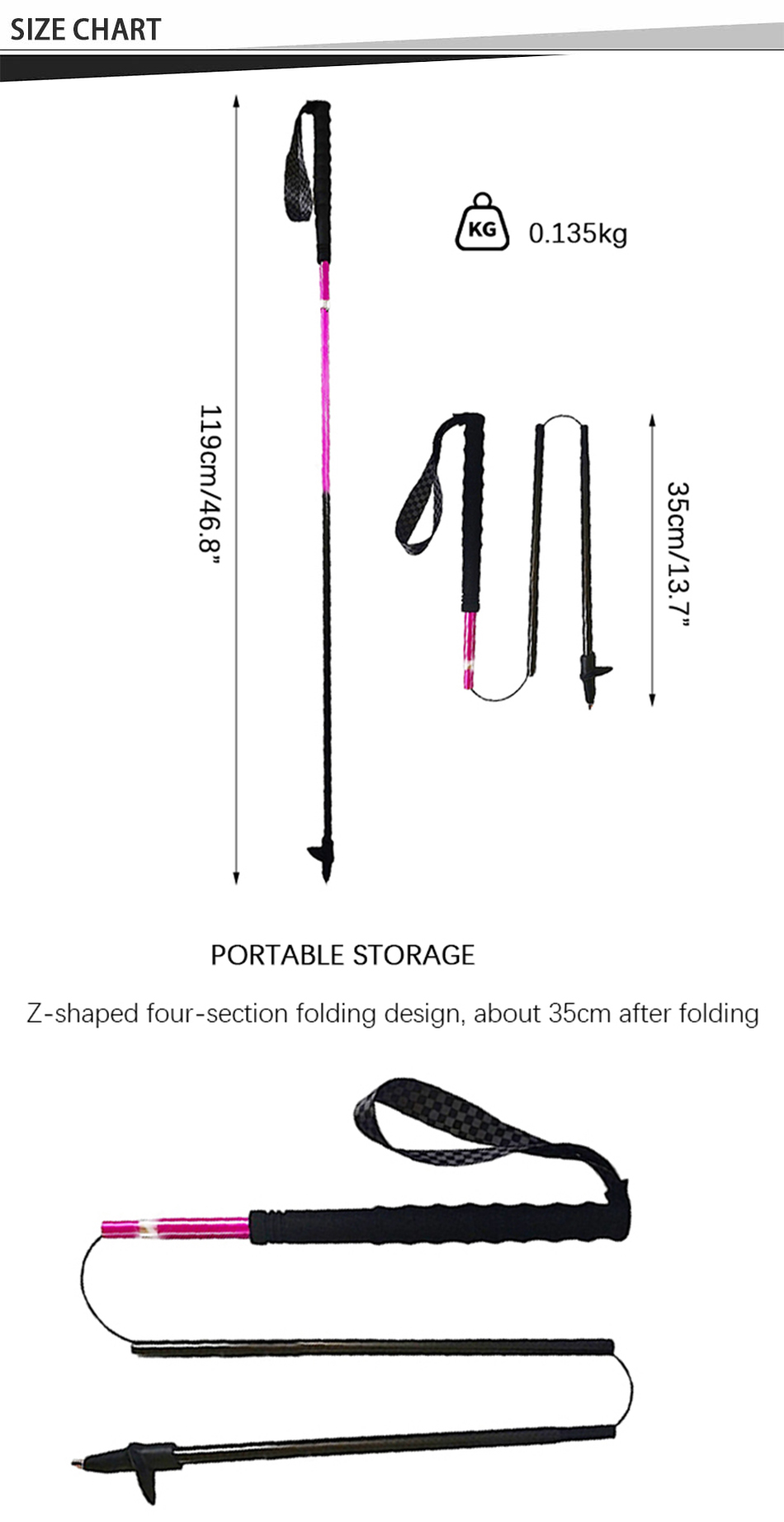 questo bastoncino da trekking è realizzato in materiale in lega di alluminio 7075, resistente alla corrosione e più leggero di altri materiali.