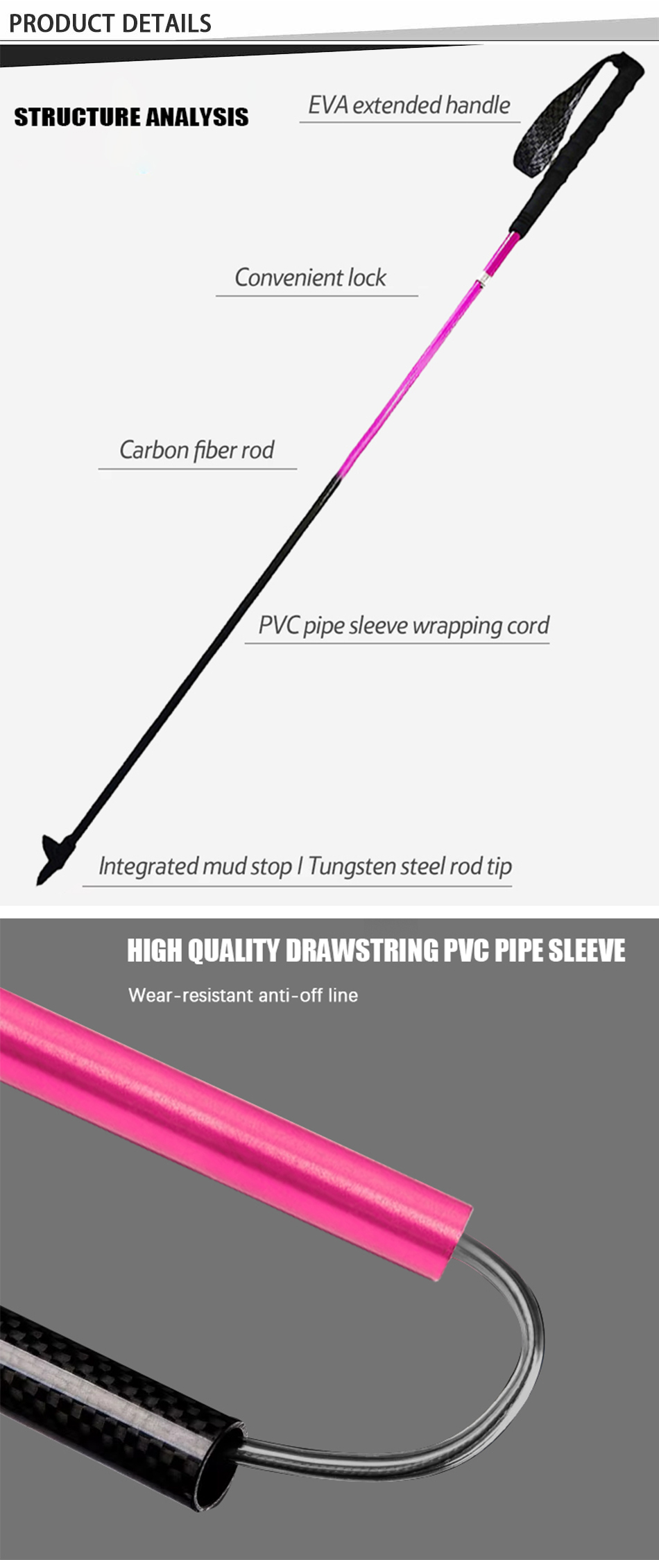 I bastoncini da trekking, come valido aiuto per gli sport all'aria aperta, possono portare molti benefici alle attività di alpinismo all'aperto, come migliorare la stabilità della camminata e ridurre il carico sulle gambe. Abbiamo bastoncini da trekking in fibra di carbonio e lega di alluminio, nonché bastoncini da trekking a tre e quattro sezioni.