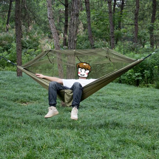 questa amaca con zanzariera previene l'infestazione di zanzare e migliora il comfort del campeggio all'aperto.