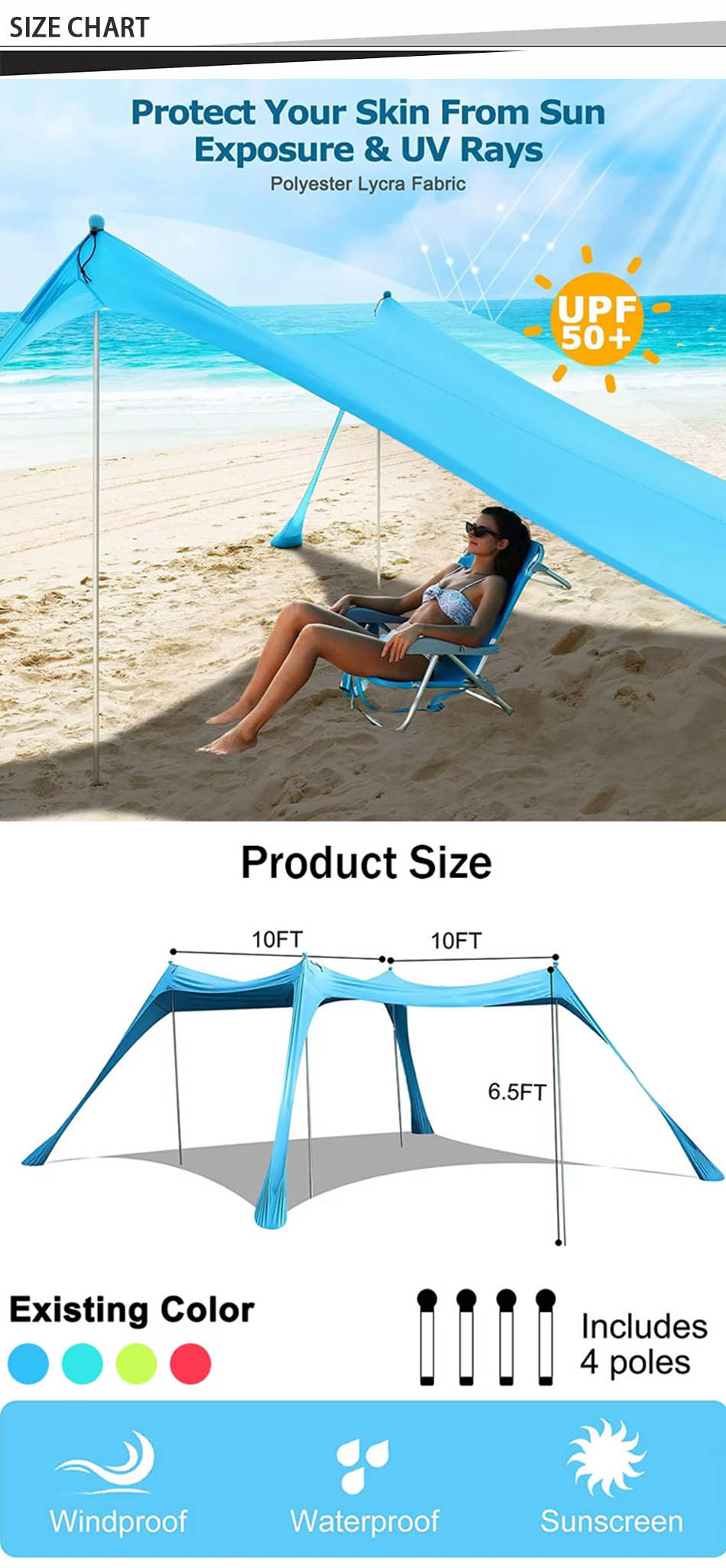 I pali in alluminio Camping baldacchino da sole da sole Sundi di sabbia da sole in spiaggia sono un rifugio per esterni resistente e versatile progettato per campeggio, viaggi in spiaggia e picnic.