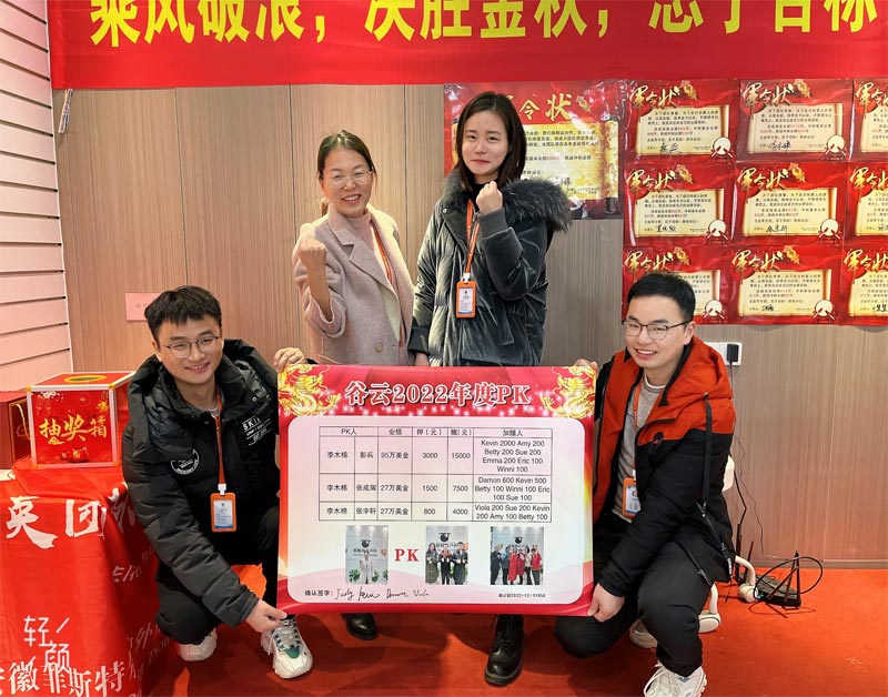 durante la riunione, il direttore generale di anhui feistel outdoor product co., ltd. ha lanciato un'attività sulle scommesse annuali sulla performance. gli amici hanno scommesso con il direttore generale in base ai propri obiettivi, e potevano ottenere rispettivamente i premi corrispondenti. tutti si univano uno dopo l'altro. in questo evento, c'erano anche persone che hanno aggiunto il gioco d'azzardo. durante l'intero incontro, tutti hanno dato consigli uno dopo l'altro, e infine le statistiche sono state effettuate da un dipendente di anhui feistel outdoor product co., ltd.