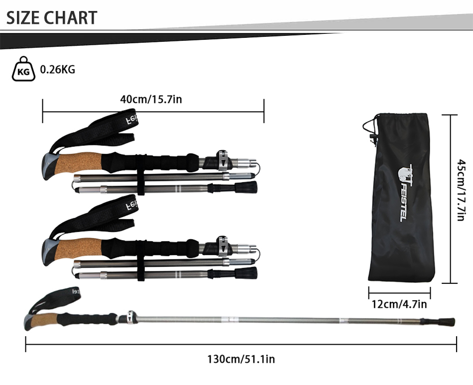 Marca : FABBRICA DI ANHUI FEISTEL Relaziona la produzione : OEM e ODM Prodotto : I bastoncini da passeggio pieghevoli multifunzionali in alluminio 7075 ultraleggeri sono caratterizzati da una struttura resistente, comode impugnature in EVA e una portabilità compatta, offrendo un supporto affidabile per escursioni all'aperto, arrampicata, trekking e avventure di camminata quotidiane.