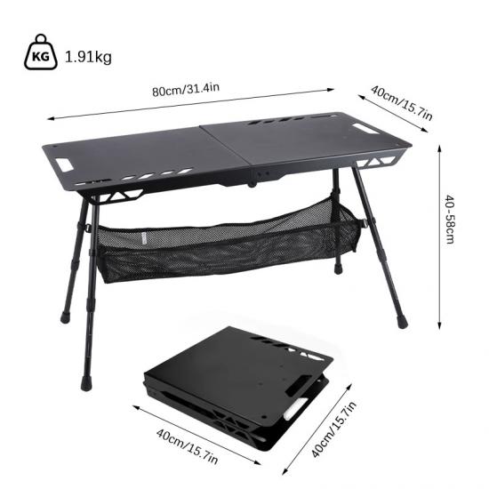 Marca : FABBRICA ANHUI FEISTEL Produzione correlata : OEM e ODM Prodotto : tavolo da campeggio portatile e leggero in alluminio con altezza regolabile, ideale per attività all'aperto come picnic, barbecue e campeggio. Facile da piegare e trasportare.