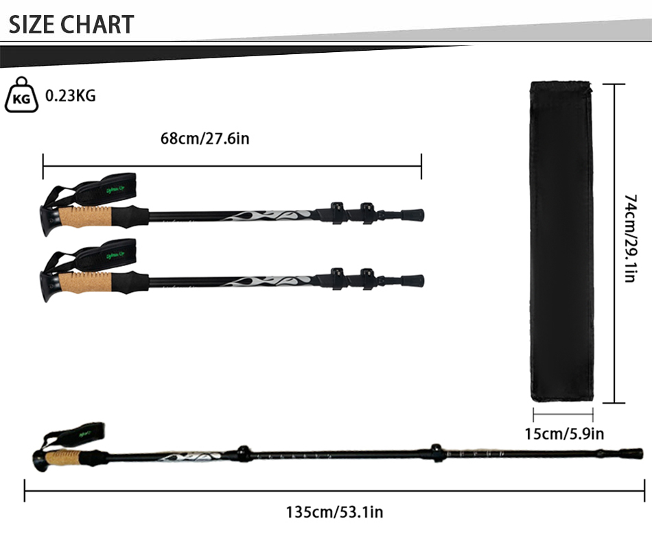 Marca: FABBRICA ANHUI FEISTEL Relativo alla produzione: OEM e ODM Prodotto: Bastoncino da trekking telescopico leggero in alluminio 6013: chiusure rapide a regolazione, resistente, versatile, ergonomico, leggero, ideale per l'escursionismo, lunghezza personalizzabile, resistente.