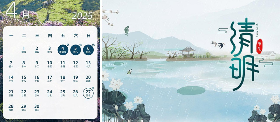 ha ufficialmente pubblicato l'accordo per le festività del Qingming Festival nel 2025: tutti i dipendenti potranno godere di tre giorni di vacanza dal 4 al 6 aprile e torneranno al lavoro il 7 aprile. In questa buona stagione per le gite, l'azienda ha lanciato contemporaneamente il "Piano di campeggio primaverile" per proteggere il tempo all'aperto dei dipendenti con attrezzature professionali.