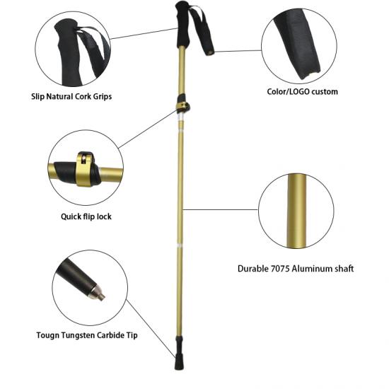 feistel in lega di alluminio all'ingrosso in sughero EVA manico fuori bastoncini da trekking pieghevoli con chiusura rapida