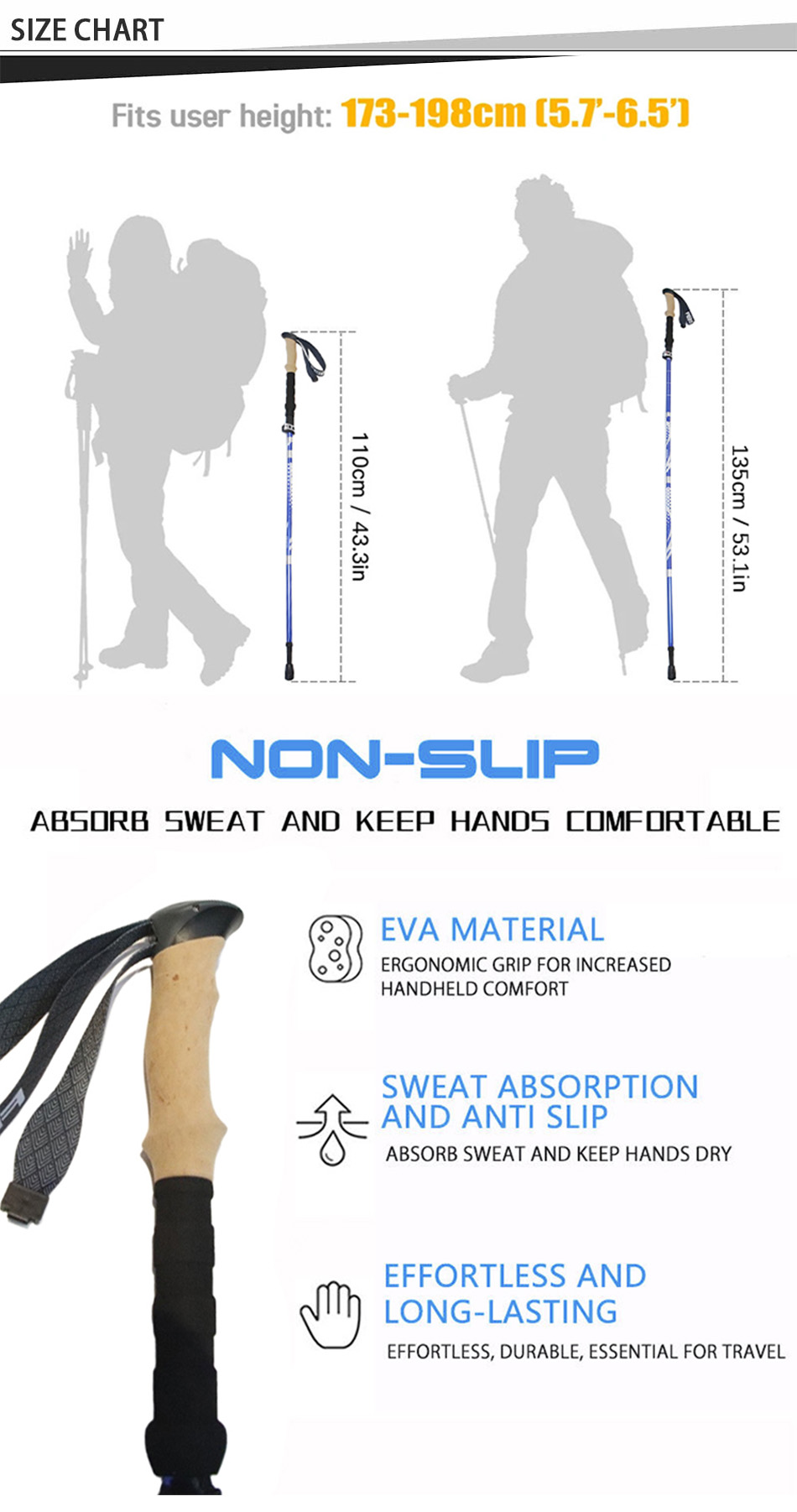 questo bastoncino da trekking è realizzato in materiale in lega di alluminio 7075, resistente alla corrosione e più leggero di altri materiali.