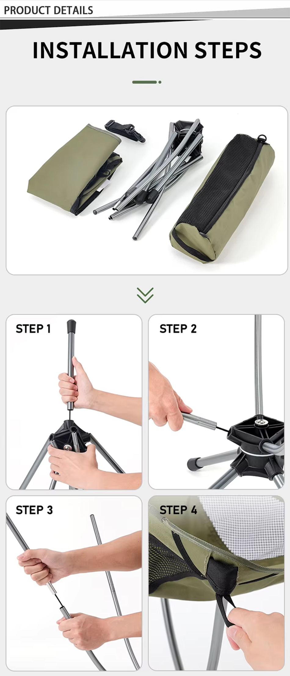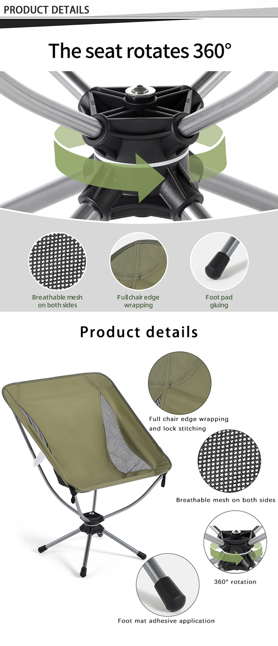 Marca : FABBRICA ANHUI FEISTEL Produzione correlata : OEM e ODM Prodotto : sedia portatile da campeggio pieghevole in alluminio per esterni da spiaggia, comoda e portatile, puoi goderti il ​​tempo libero e il comfort durante il campeggio.