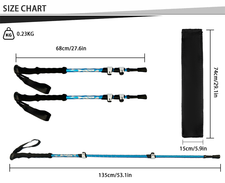 Prodotto : I bastoncini da trekking telescopici regolabili, ultraleggeri e ad alta resistenza sono dotati di una punta in acciaio al tungsteno resistente e di una comoda impugnatura in EVA, che garantisce un supporto stabile e affidabile per escursioni, trekking e avventure all'aria aperta.