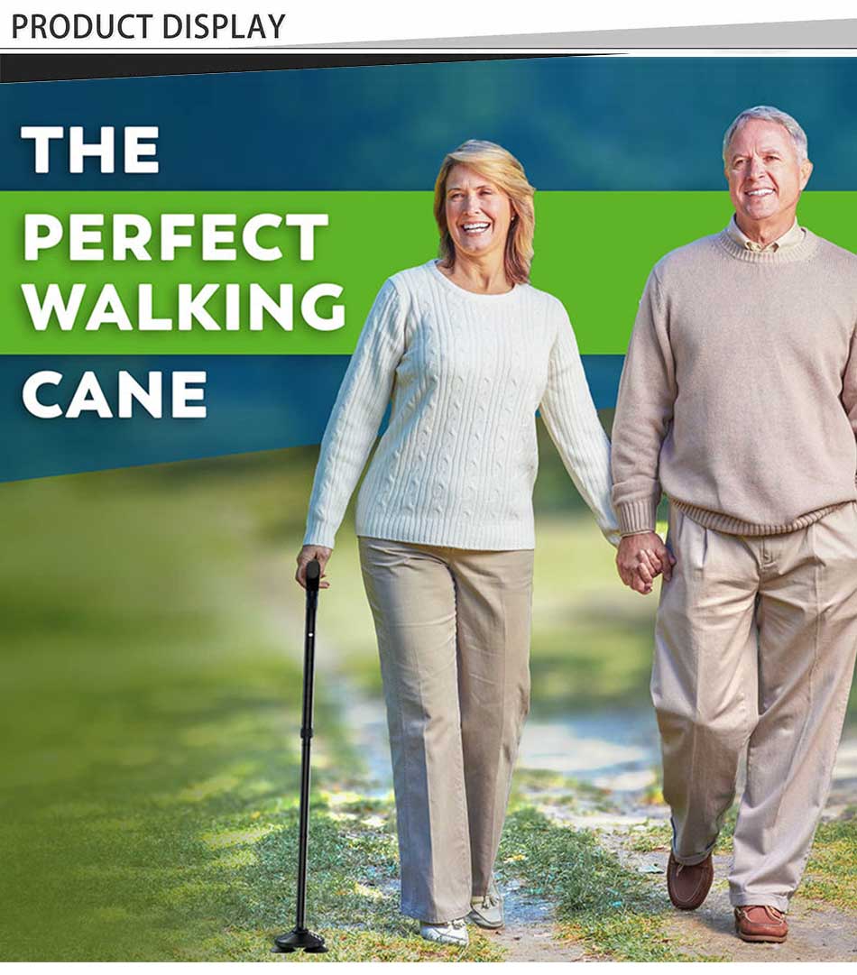 Prodotto : Il nuovo bastone da passeggio per anziani è caratterizzato da un design pieghevole con una comoda impugnatura a T, una base stabile e antiscivolo e una struttura durevole, offrendo agli utenti anziani maggiore equilibrio, sicurezza e supporto per camminare all'aperto.