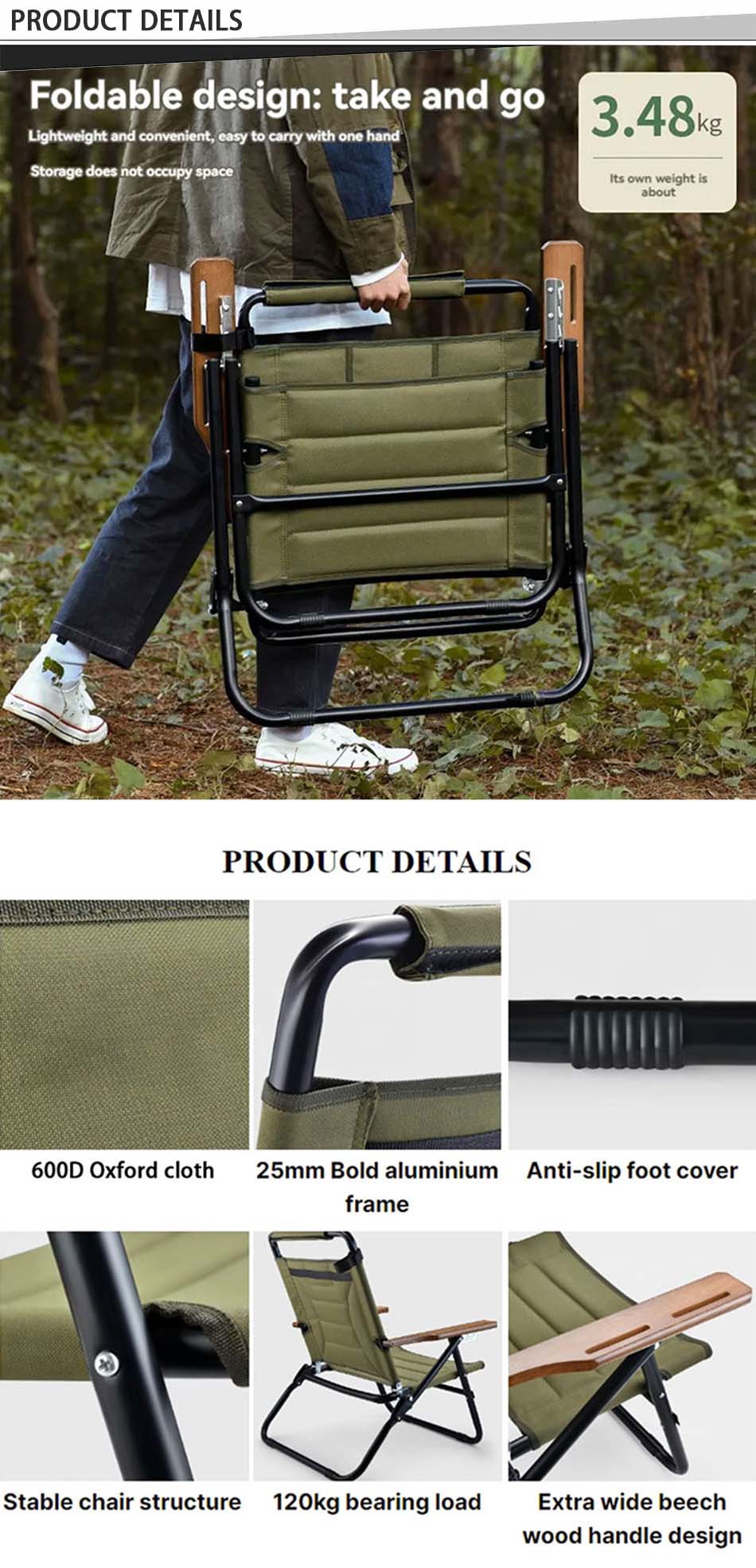 Marca : FABBRICA ANHUI FEISTEL Produzione correlata : OEM e ODM Prodotto : sedia portatile da campeggio pieghevole in alluminio per esterni da spiaggia, comoda e portatile, puoi goderti il ​​tempo libero e il comfort durante il campeggio.