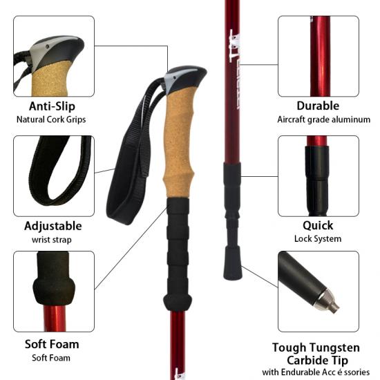 Bastone da trekking telescopico leggero in alluminio 6013 con bloccaggio rapido regolabile