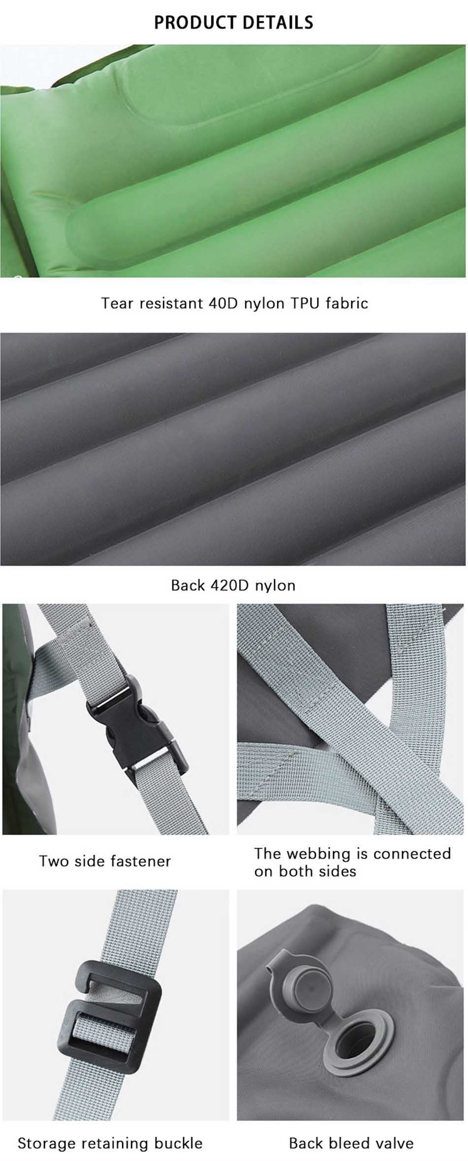 con il materiale di nylon 40d , il materassinois più durevole e acqua- resistente .oltre a, il lacrima- resistente potrebbe essere un tappetino da campeggio una varietà di ambienti esterni difficili