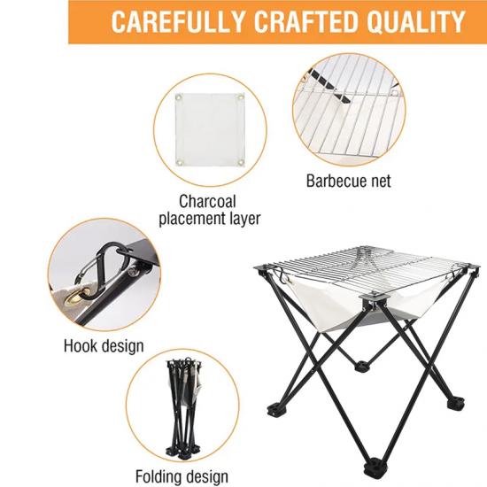 Grill pieghevole portatile esterno in tessuto ignifugo in acciaio inossidabile grill bbq a carbone