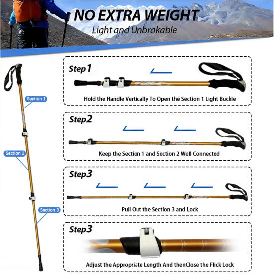 Bastone da trekking telescopico leggero in alluminio 6013 con bloccaggio rapido regolabile