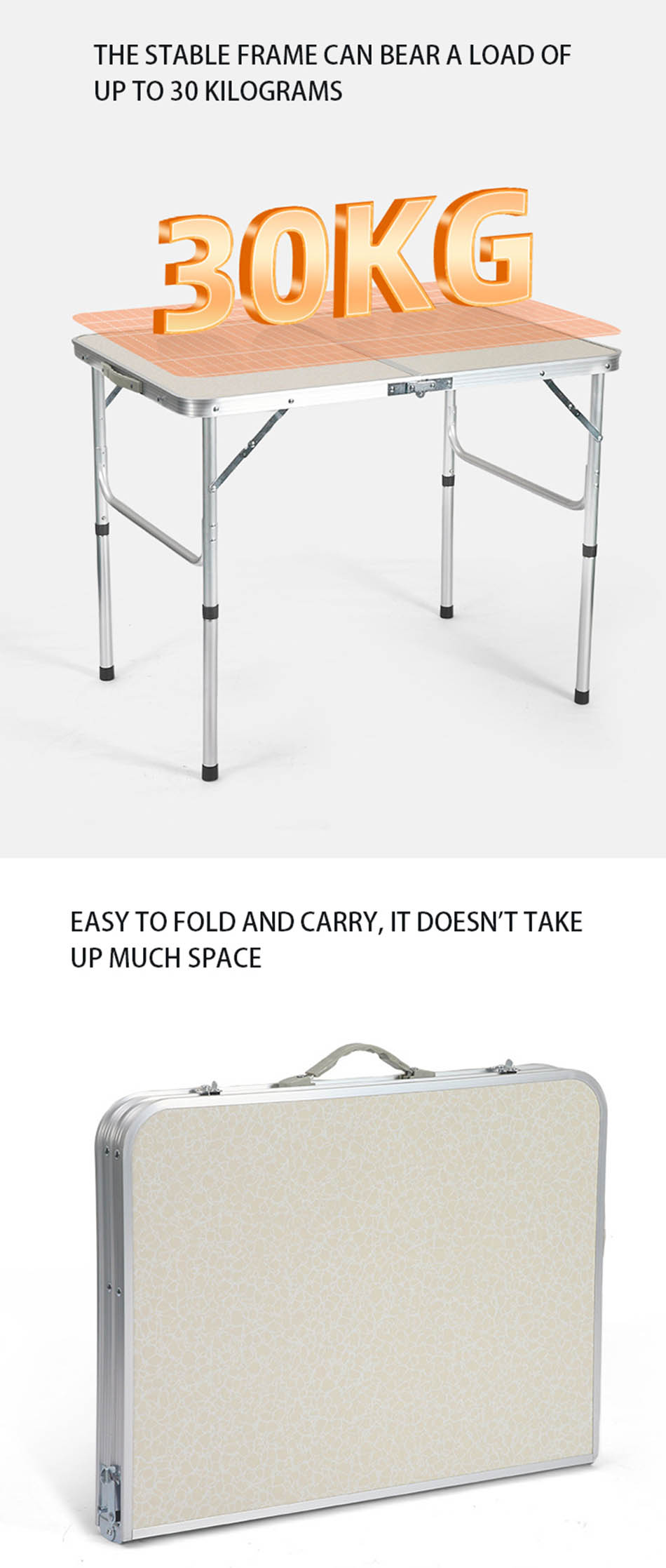 Prodotto : Il tavolo pieghevole portatile in lega di alluminio è regolabile in altezza e multifunzionale, ideale per picnic all'aperto, giornate in spiaggia, barbecue, campeggio e viaggi, grazie alla sua facile installazione.