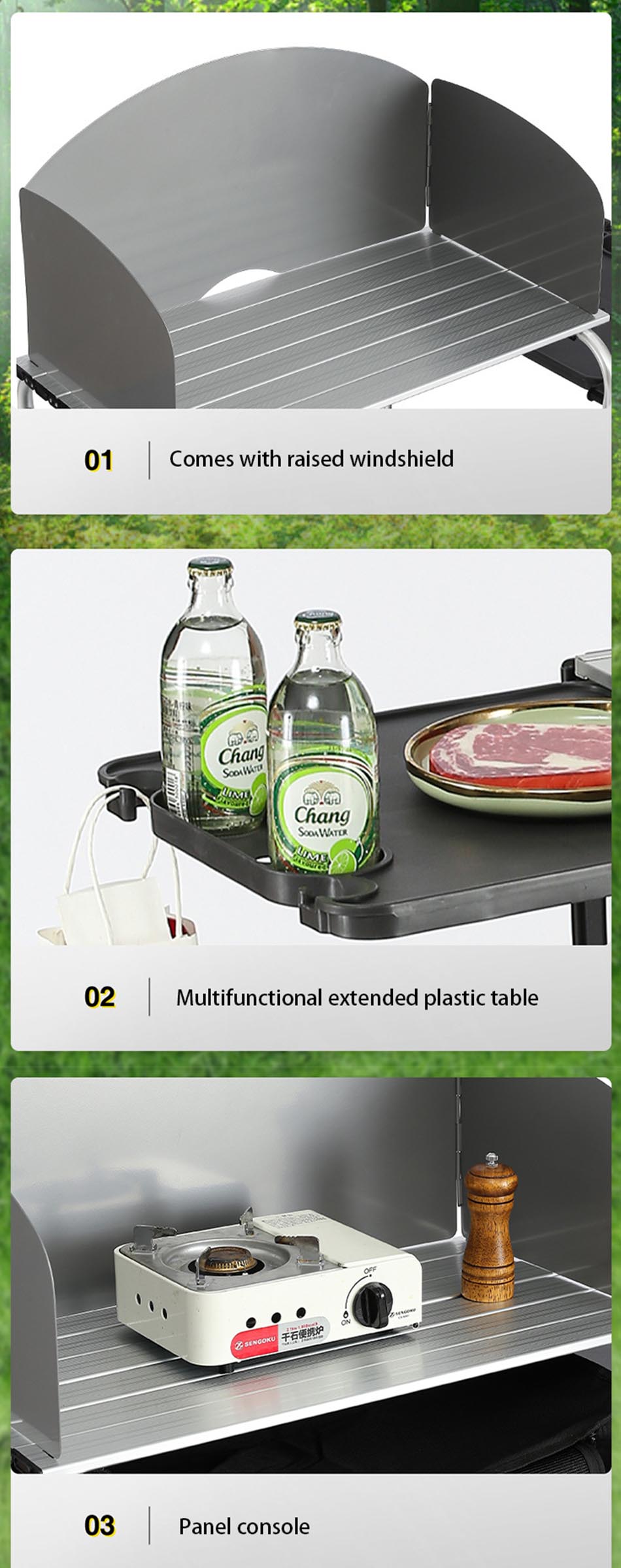 Tavolo da campeggio pieghevole piccolo sollevabile con fornello