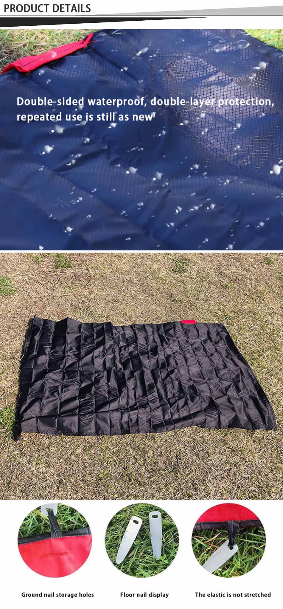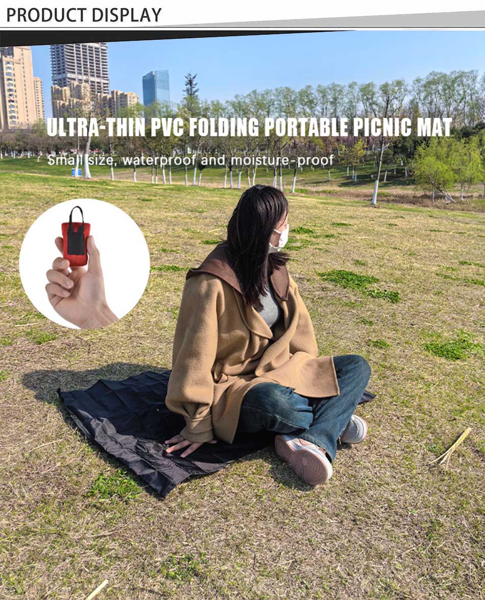 Marca : FABBRICA ANHUI FEISTEL Produzione correlata : OEM e ODM Prodotto : tappetino da picnic leggero, impermeabile e pieghevole con tecnologia ad ultrasuoni; design a tre strati per il massimo comfort; a prova di umidità; portatile con tracolla facile da trasportare.