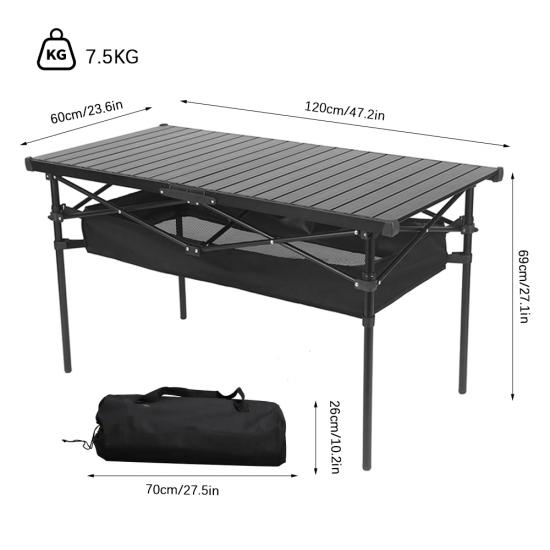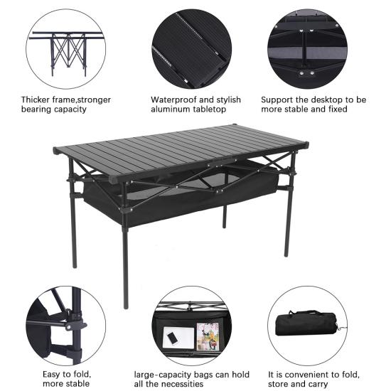 Marca : FABBRICA ANHUI FEISTEL Produzione correlata : OEM e ODM Prodotto : tavolo da campeggio portatile e leggero in alluminio con altezza regolabile, ideale per attività all'aperto come picnic, barbecue e campeggio. Facile da piegare e trasportare.