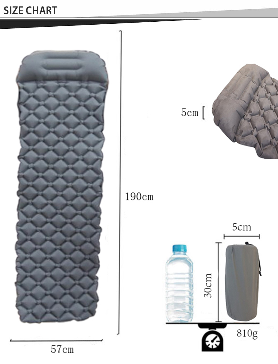 Realizzato in materiale TPU di alta qualità con una superficie in pelle scamosciata morbida, offre un'esperienza di sonno confortevole pur essendo impermeabile e resistente all'usura. Il suo design ultraleggero e compatto garantisce un facile trasporto, rendendolo perfetto per il campeggio, le escursioni, lo zaino in spalla e i viaggi.